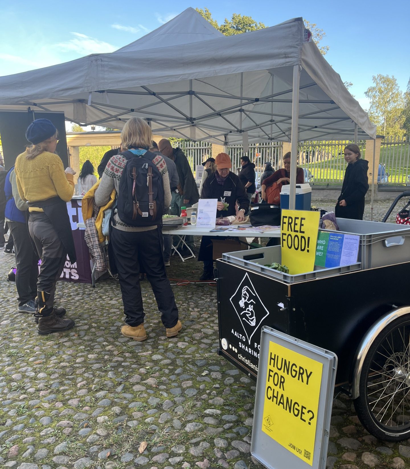 ’Ruoka-apu’ voi olla omatoimista. Ronja Tammenpää kertoi Aalto yliopiston kansanvälisen mallin mukaisesta Food Sharing toiminnasta, jossa opiskelijat kanavoivat polkuetäisyydellä sijaitsevien yhteistyökumppaneiden raaka-aineita ja ruokia käyttöön ennen kuin ne päätyvät hävikiksi. Ks. Introducing CS Students’ Sustainability Initiatives: Aalto Foodsharing | Aalto University. Opiskelijoidenkin ruoanjaossa korostuu yhteisöllisyys, mutta myös aktivismi: dyykkaus paljastaa, että jotkut yritykset pyrkivät piilottamaan hävikkiään.